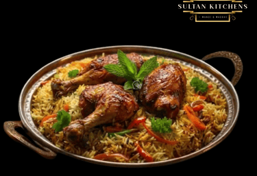 Traditional kabsa with tender chicken and fragrant rice.